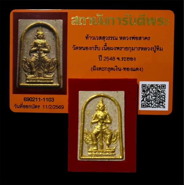 ท้าวเวสสุวรรณ หลวงพ่อสาครวัดหนองกรับ เนื้อผงพรายกุมารหลวงปู่ทิม ปี 2548 จ.ระยอง (ฝังตะกรุดเงิน-ทองแดง) สภาพสวยเดิม พร้อมบัตรรับรอง และกล่องเดิม