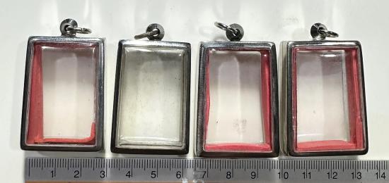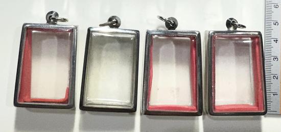 ตลับมือสองสแตนเลสทรงสี่เหลี่ยมใส่สมเด็จทั่วไปได้ 4 ใบแบบเปิดหน้า-หลังขนาด 4 x 3 ซม. |