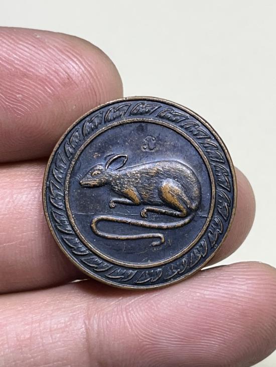เหรียญหนู ตอกโค๊ตนะ หลังเรียบ ไม่ทราบสำนัก เนื้อทองแดงรมดำครับ