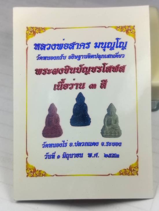 พระกริ่งผงชินบัญชร โสฬส หลวงพ่อสาคร วัดหนองกรับ ออกวัดหนองไร่ จ.ระยอง เนื้อว่านไพรดำ พร้อมรูป ปี 2553 |