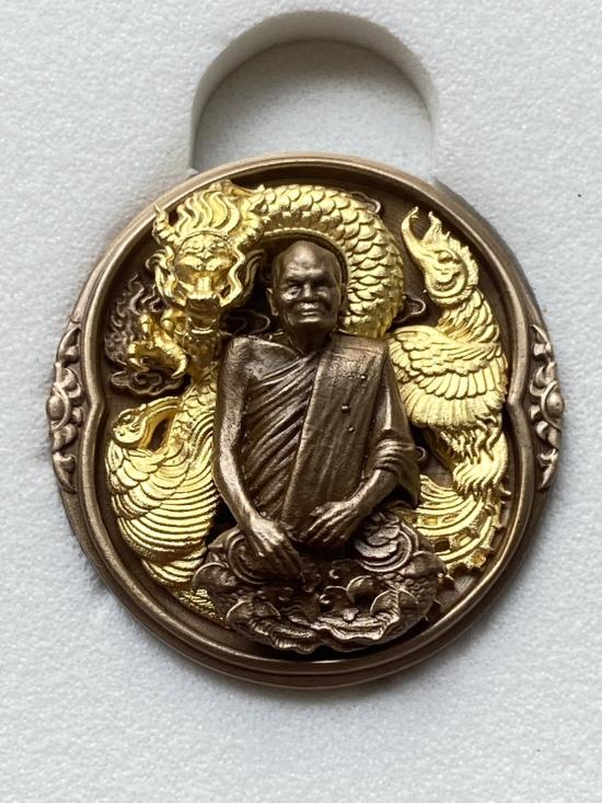 เคาะเดียวแดง หลวงปู่บุดดา รุ่น บารมีไตรมงคล เนื้อ สัมฤทธิ์มังกรหงส์ชุบทอง |
