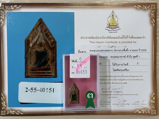 หลวงปู่ทิมร่วมปลุกเสก สร้างปี 2505 สวยสมบูรณ์ผิวเดิมๆ ไม่หักไม่ซ่อม รับประกันพระแท้ ดูง่าย พร้อมใบประกาศรางวัลที่3 งานสมาคม