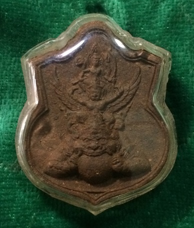 พระนารายณ์ทรงครุฑประทับบนพระราหู ท่านเจ้าคุณธงชัย วัดไตรมิตร เนื้อผงพุทธคุณ รุ่นแรก หลังยันต์ดวง ปี 2545 เนื้อน้ำตาล