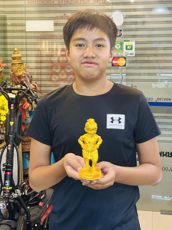 1 ใน 100 องค์ **** กุมารทอง จินดามณี รับทรัพย์ พ่นสีชมพู ขนาดบูชา เนื้อเรซิ่น หลวงพ่อสาคร วัดหนองกรับ ปี 2569 ( ปิ่นเงินแท้ ) ฝังพลอยสีแดง ( หน้า-หลัง ) ทาทอง เพนท์สี ชมพู ฝังลูกอม มวลสาร ตระกรุตคู่ เงิน+ทองแดง จารมือทั้งตัว หมายเลข ***65*** สร้าง 100 องค์ พิธีปลุกเสก ณ โบสถ์ วัดหนองกรับ ระยอง ปลุกเสก โดย เกจิคณาจารย์ สายหลวงพ่อสาคร วัดหนองกรับ จำนวน 11 รูป สร้างน้อย 68 ตน ( จากจำนวนการสร้าง 168 องค์ แบ่งเป็นสีชมพู เลข 1-100 สีไข่ไก่ 101-168 ) ( ขนาดความสูง 6.5 นิ้ว กว้างจากฐาน 2.7 นิ้ว )
