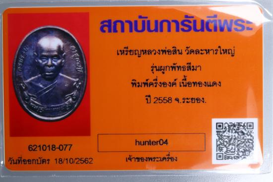 เหรียญหลวงพ่อสิน วัดละหารใหญ่ รุ่นผูกพัทธสีมา พิมพ์ครึ่งองค์เนื้อทองแดง ปี2558 พร้อมกล่องเดิม |