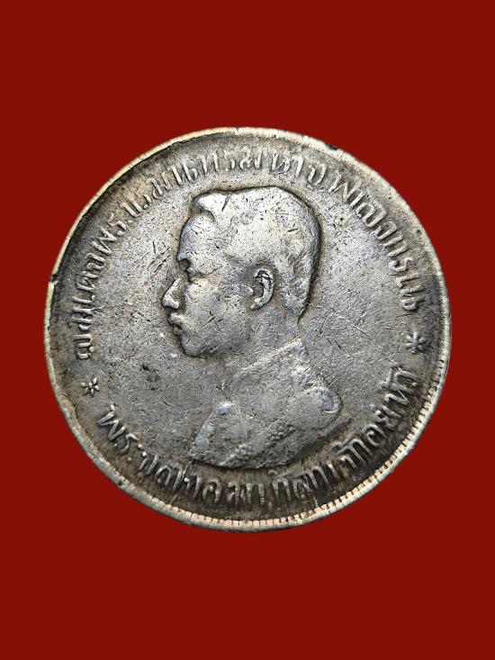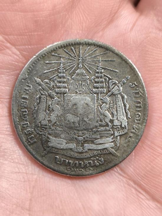 เหรียญบาทหนึ่ง รัชกาลที่ 5 หลังตราแผ่นดิน ร.ส.๑๒๑ เนื้อเงิน