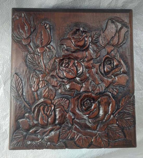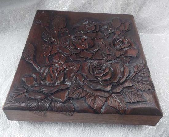 ***วัดใจ***กล่องไม้แกะสลัก วินเทจญี่ปุ่น งานฝีมือเก่า ลายกุหลาบ ขนาด 11 X 13 นิ้ว ใบใหญ่ไม้หนาๆ หนา 3 นิ้ว |