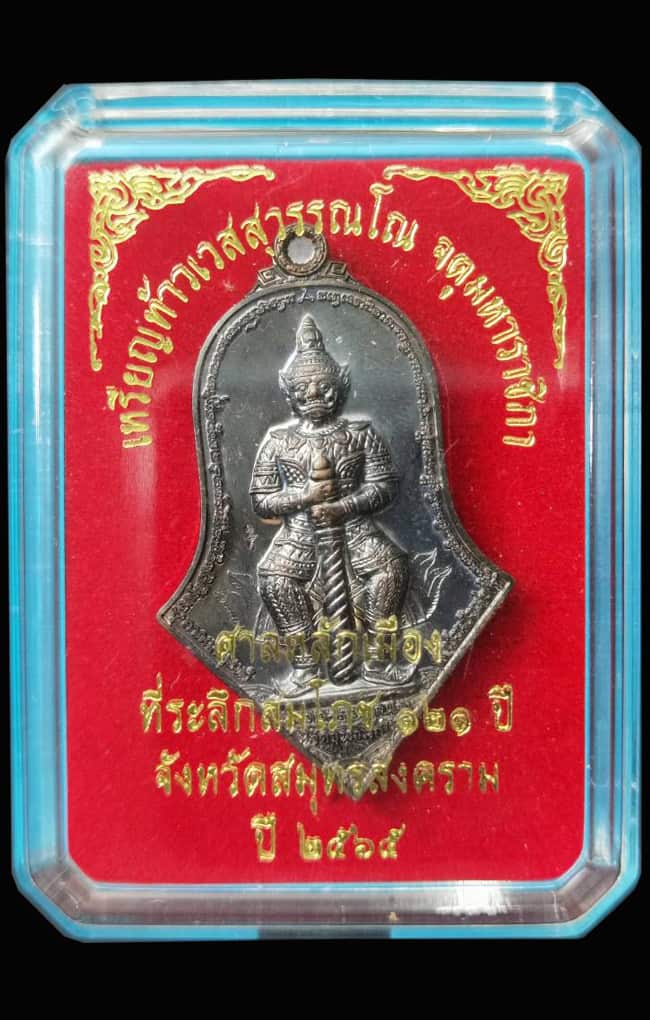 เหรียญสมโภชหลักเมืองสมุทรสงคราม 121 ปี ท้าวเวสสุวรรณ ปี2565 เนื้อทอแดง |