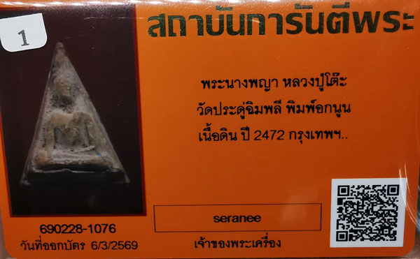 พระนางพญา หลวงปู่โต๊ะ วัดประดู่ฉิมพลี พิมพ์อกนูน เนื้อดิน ปี2472 + บัตรG-pra สภาพเดิมค่ะ สภาพตามรูปทุกประการค่ะ