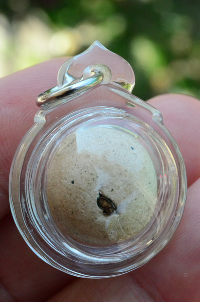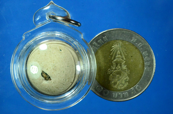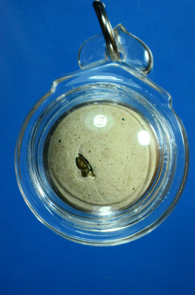 ลูกอม เนื้อผงฝังตะกรุด เลี่ยมอย่างดี ไม่ทราบที่ครับ |