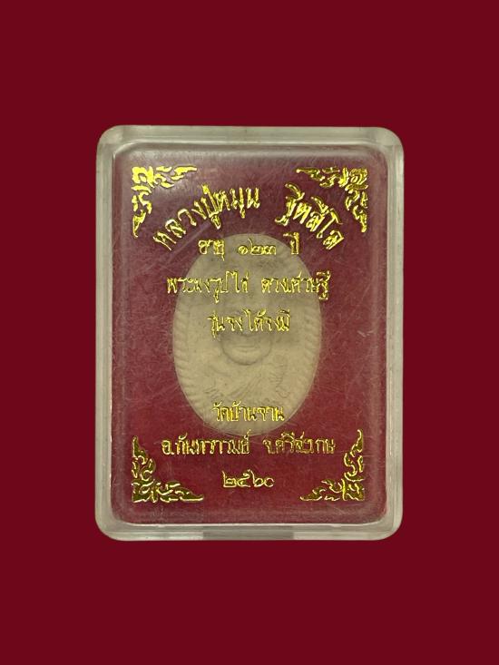 พระผงรูปไข่ ดวงเศรษฐี รุ่น จงได้จงมี หลวงปู่หมุน ฐิตสิโล วัดบ้านจาน เนื้อผงขาวพุทธคุณ โค๊ดมี |