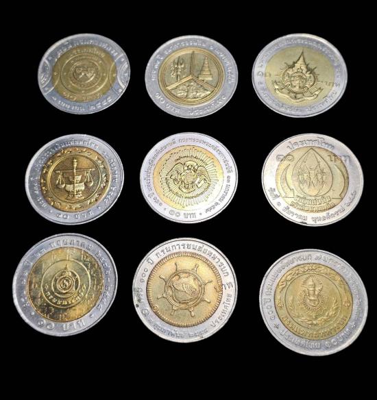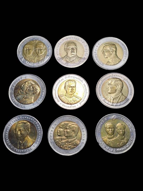 เหรียญ10บาท2สี เหรียญสะสมหลายวาระจำนวน9เหรียญ |
