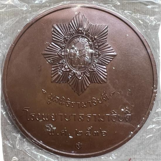 เหรียญรัชกาลที่ 5 มูลนิธิรามาธิบดี โรงพยาบาลรามาธิบดี พ.ศ.๒๕๓๖ ทองแดงใหญ่ 7 ซม. พร้อมกล่องเดิม
