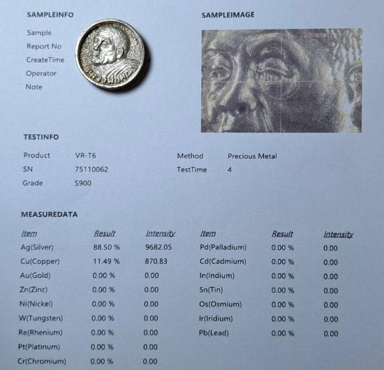 เหรียญนี้เนื้อเงิน (((เงิน Ag(Silver) 88.50% น้ำหนัก 15.12 กรัม)))