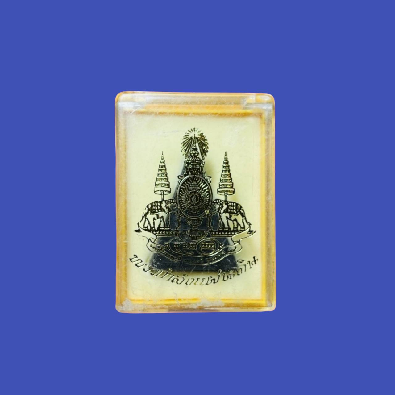 ๔).พระกำลังแผ่นดิน ขนาด ๓.๒ ซม.เนื้อผงใส่กรอบกะไหล่ทอง บริจาค ๓๐๐ บาท จำนวนการสร้าง ๑,๐๐๐,๐๐๐ องค์