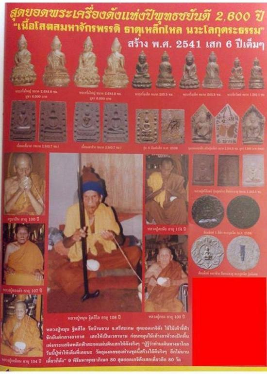 ธาตุเหล็กไหล พระธาตุ 500 อรหันต์ พระธาตุข้าว พระธาตุ 500 อรหันต์ พระธาตุข้าว หงอนพญานาค แก้วขนเหล็ก เพชรหน้าทั่ง ผงเหล็กไหลฤาษี ผงเหล็กไหลเงินยวง ผงเหล็กไหลตาแรด โคตรเหล็กไหลสีเงินยวง ขี้เหล็กไหล เหล็กย้อย เหล็กทรหด หยกพันปี แร่บางไผ่ ผงธนบัตรเก่า ผงตะไบเหล็กน้ำพี้ (ถลุงแล้ว) แร่เหล็กน้ำพี้ไหลเพชรดำ ขมิ้นหินหมื่นปี ข้าวตอกพระร่วง แก่นไม้สักหินอายุ 160 ล้านปี ลูกมณีโคตร คดกะลา กะลาตาเดียว กะลาไม่มีตา (กะลามหาอุด) มะพร้าวลูกกรอก กัลปังหาดิน ดินโป่ง ดินกลางใจเมือง และน้ำจากศาลหลักเมือง 76 จังหวัด ตะกรุดข้าวสารหิน คดหอย ทรายเสก ผงพระครูเทพโลกอุดร ผงหลวงปู่ดู่ วัดสะแก ผงหลวงปู่แหวน ผงจิตรลดา ผงพระปิลันทน์ ผงพระตุ๊กตาวัดพลับ ผงหลวงปู่ทิมวัดระหารไร่ ผงหลวงพ่อแก้ววัดเครือวัลย์ แป้งเสกหลวงปู่อยู่วัดไทรโยง ผงว่านหลวงพ่อเมี้ยนวัดโพธิ์กบเจา เศษพระหักหลวงพ่อมีวัดมารวิชัย เศษพระหักหลวงปู่คำพันธ์วัดธาตุมหาชัย และวัดต่าง ๆ อีกมากมาย เขากวางคุด น้ำมันมนต์หลวงพ่อเมี้ยนวัดโพธิ์กบเจา ชานหมากเสกหลวงพ่อดำวัดท่าทอง ดินวิเศษสีเหลือง สมุนไพร 300 กว่าชนิด น้ำมนต์ 100 ตุ่ม หลวงปู่หงส์วัดเพชรบุรี ดินวิเศษสีเขียว แร่เงิน แร่ทอง แร่นาค ผงธูปสมเด็จโตวัดระฆัง ผงธูปวัดเกศไชโย ผงธูปหลวงปู่ทวดวัดช้างให้ ผงธูปหลวงพ่อแช่มวัดท่าฉลอม ผงธูปหลวงพ่อจรัญวัดอัมพวัน แม่ลิ้มกอเนี่ย ผงธูปศาลเจ้าพ่อเสือ ผงธูปวัดเล่งเน่ยยี่ ผงธูปวัดไต๋ฮงกง พระบรมสารีริกธาตุ หินพระธาตุเขา 300 ยอด พระธาตุสิวลีสีขาว พระธาตุสิวลีสีทอง พระธาตุแก้วขวานฟ้าผ่าเนื้อหิน 16 อัน ข้าวสารหินหมื่นปี ข้าวสารดำพันปี ผงมณีรัตนะ โคตรเหล็กไหล (สีดำเงา) แร่เกาะล้าน เหล็กย้อย ลูกมณีโคตร อุกามณี (สะเก็ดดาว) ไม้กลายเป็นหิน ดอกไม้หิน เพชรน้ำค้าง หินเขี้ยวหนุมาน ขมิ้นขาวเปลือกหอย 75 ล้านปี ไม้งิ้วดำ คดปลวก ลูกธนูคนธรรพ์ แร่ทรายเงิน แร่ทรายทอง ผงงาช้าง งาช้างตายพราย งาช้างกระเด็น งาช้างกระดอน ผงเพชรแท้ เศษพลอยเมืองจันทร์ ผงเก่า วัดระฆัง ผงสร้างพระหลวงพ่อคูณวัดบ้านไร่ ผงสร้างพระหลวงพ่อแพวัดพิกุลทอง ผงสร้างพระหลวงพ่อเปิ่น วัดบางพระ ผงสร้างพระหลวงพ่อคงวัดบางกระพ้อม ผงสร้างพระหลวงปู่นิลวัดครบุรี ผงสร้างพระหลวงพ่อยิด วัดหนองจอก ผงสร้างพระหลวงพ่อเชิญวัดโคกทอง ผงสร้างพระหลวงปู่คำพันธ์วัดธาตุมหาชัย ผงสร้างพระ หลวงพ่อเกษมเขมโกสุสานไตรลักษณ์ ผงสร้างพระอาจารย์ต่าง ๆ อีก 300 กว่ารูป (ซึ่งไม่สามารถลงหมดได้) เศษพระหักของวัดระฆัง เศษพระหักวัดปากน้ำ พระเครื่องเก่าที่ชำรุดอีกเป็นจำนวนมาก ผงตะ