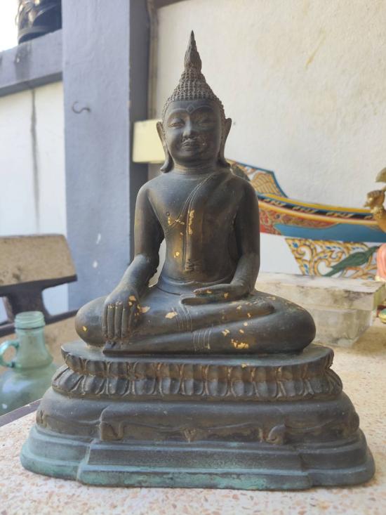 พระบูชาหลวงพ่อโต วัดหลักสี่ราษฎร์สโมสร อ.บ้านแพ้ว จ.สมุทรสาคร ปี 2530 กว่าๆขนาดหน้าตัก 5 นิ้ว เนื้อโลหะทองเหลืองผิวหิ้งๆเดิมๆครับ |