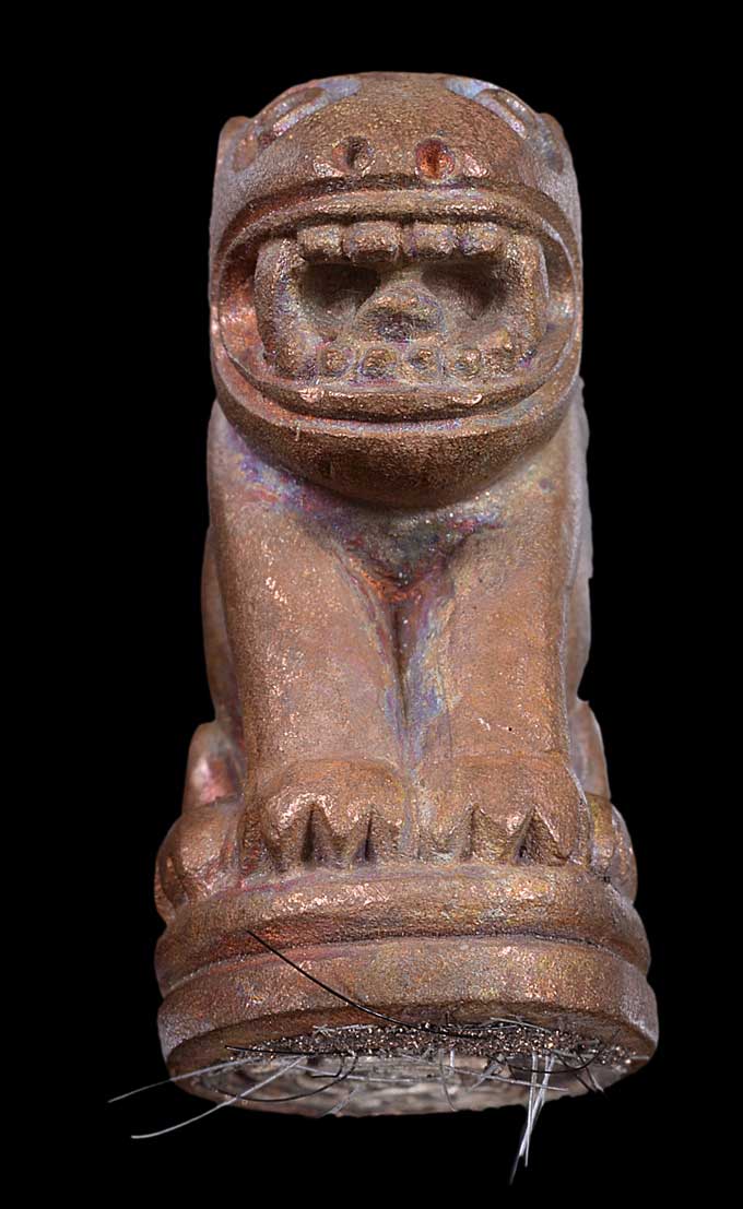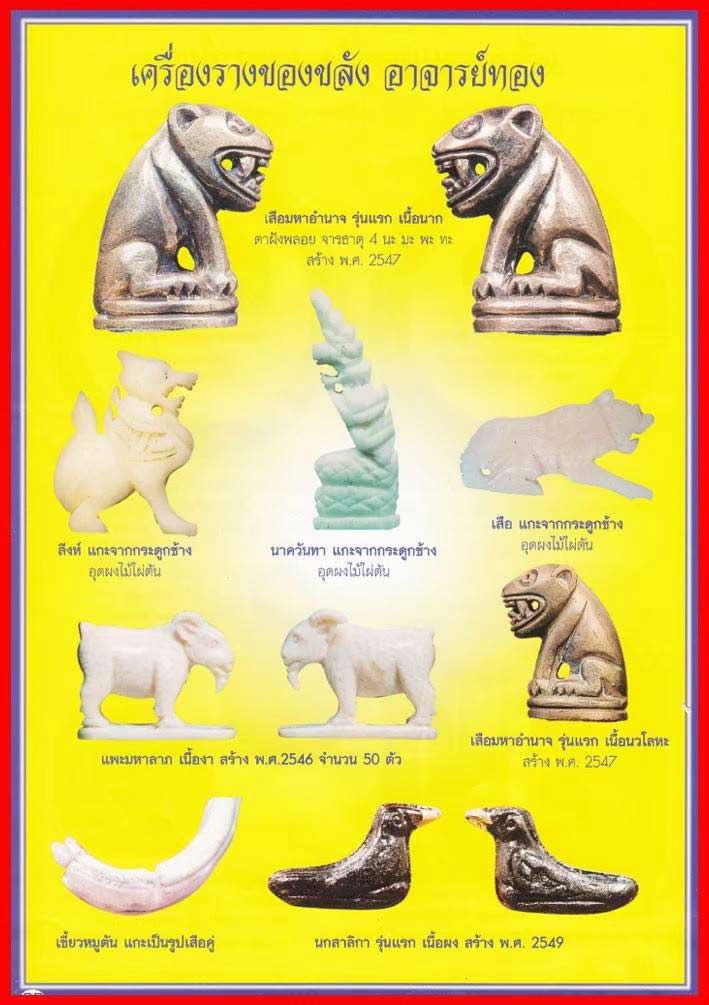 -เสือมหาอำนาจ รุ่นแรก เนื้อนวะโลหะ ใต้ฐานเงิน มีจาร ยันต์ด้านหลัง แก้ม(ซ้าย-ขวา) เข่า (ซ้าย-ขวา) ตอกโค๊ตที่หัว และตอกโค๊ตที่ใต้ฐาน หมายเลข 34 อาจารย์ทอง วัดสำเภาเชย ปี 2547 จ.ปัตตานี