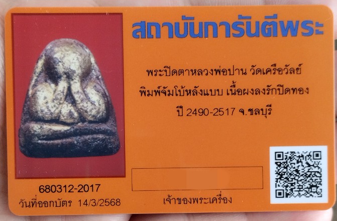 พร้อมบัตรรับรองการันตีพระ |