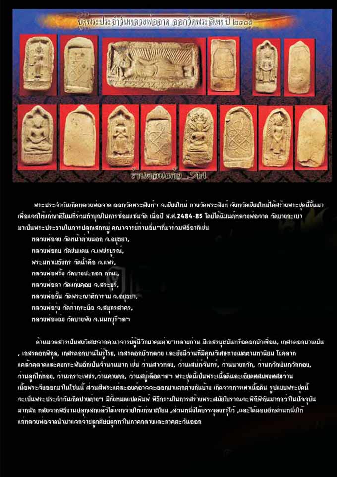 พระประจำวันเกิด หลวงพ่อจาด ออกวัดพระสิงห์ สร้างปี 2484-2485 พระคณาจารย์ที่มาร่วมปลุกเสกพระผงประจำวันวัดพระสิงห์รุ่นนี้ ล้วนเป็นพระคุณเจ้าผู้ทรงวิทยาคม สุดยอดแห่งยุค อาทิเช่น
