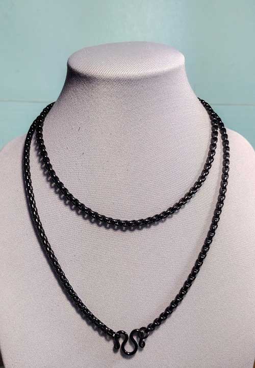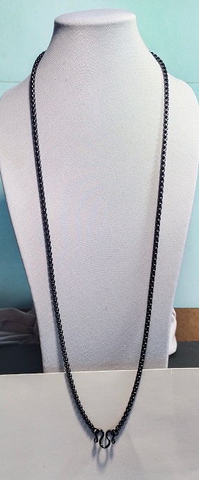 สร้อยลายผ่าหวายเนื้อดำ โลหะสเเตนเสล 304 เเท้ ขนาด3.5 mm ยาว 26 นิ้ว |