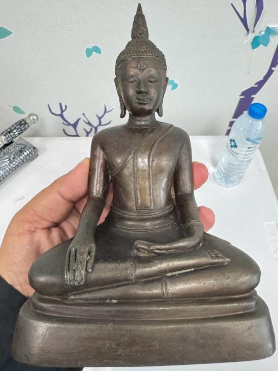 พระบูชาปางมารวิชัย หน้าตัก 5 นึ้ว สูง 8 นึ้ว เนื้อโบหะไม่ทราบที่ |