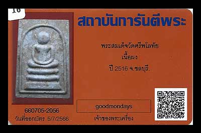 สมเด็จ ปี2516 วัดศรีพโลทัย ชลบุรี ลป.โต๊ะ ร่วมปลุกเสก |