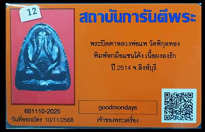 พระปิดตา เนื้อผงใบลาน ปี2514 หลวงพ่อแพ วัดพิกุลทอง สิงห์บุรี |