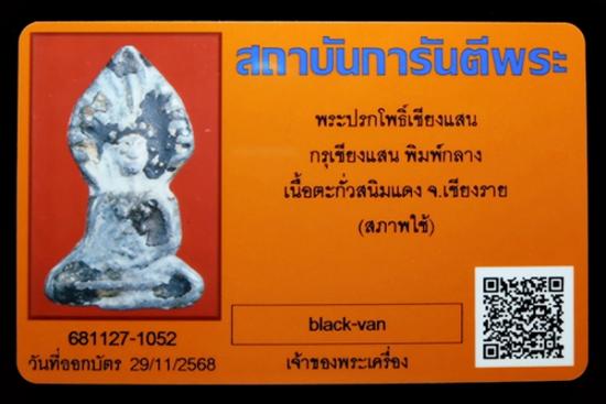 พระเชียงแสน ซุ้มปรกโพธิ์ พิมพ์กลาง กรุเชียงเเสน เนื้อตะกั่วสนิมแดง จ.เชียงราย พร้อมบัตรรับรอง G-pra ครับ |