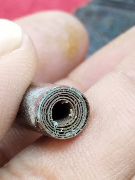 ตะกรุดทองแดงขนาดนิ้วครึ่งดูเก่ามีอายุไม่ทราบที่ประกันแท้ |