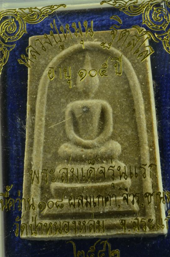 พระสมเด็จรุ่นแรก หลวงปู่หมุน ฐิตสีโล พิธีเจริญลาภ ปี 2542 หลังปั๊มยันต์แดง เนื้อว่านน108 ผสมเกศา จีวร ชานหมาก พร้อมกล่อง |
