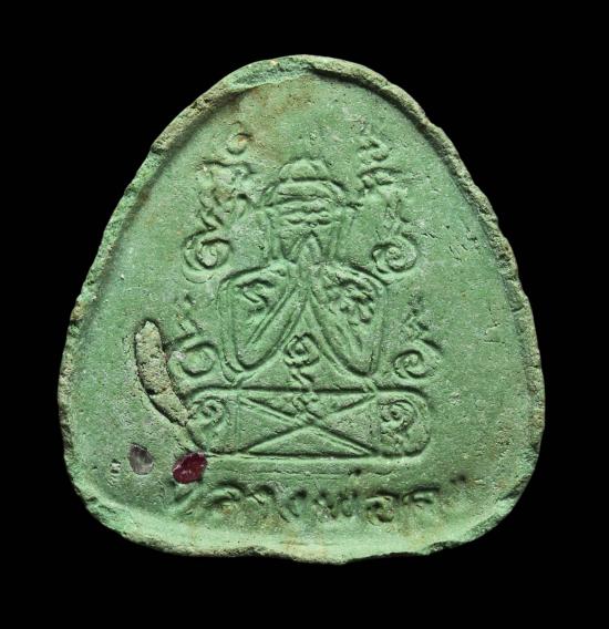 พระปิดตาไตรมาสเนื้อเขียวเหนี่ยวทรัพย์หลังฝังพลอยปี 2522 หลวงพ่อคงวัดวังสรรพรสจันทบุรี