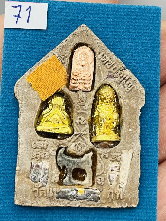 เนื้อว่าน ๑๐๘ หลังฝังตะกรุดเงิน5ดอก ปรก ปิดตาหลังรูปเหมือน หนุมาน แพะเขาควายเผือก จีวร หมายเลข 71 |