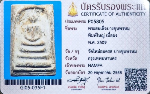 สมเด็จบางขุนพรหม 2509 พิมพ์ใหญ่ สวยๆ พร้อมบัตรรับรองสมาคมฯ