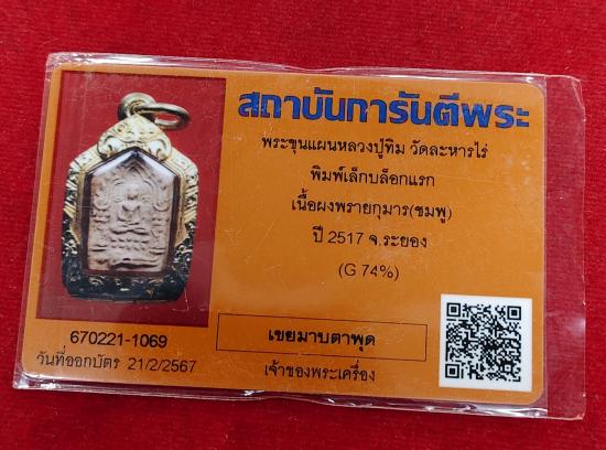 พระขุนแผนผงพรายกุมารบล็อคแรก หลวงปู่ทิม วัดละหารไร่ เนื้อชมพูสีอิฐ หายาก ปี 2517 พร้อมบัตรรับรองเวปGครับ พร้อมตลับทอง