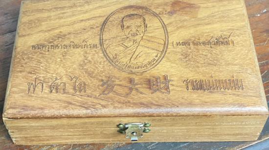 กล่องไม้ใส่ชุดทองคำ รุ่นฟาต้าไฉ่ รวยแน่นแน่น ปี2556 พระมหาสุรศักดิ์ วัดประดู่พระอารามหลวง |