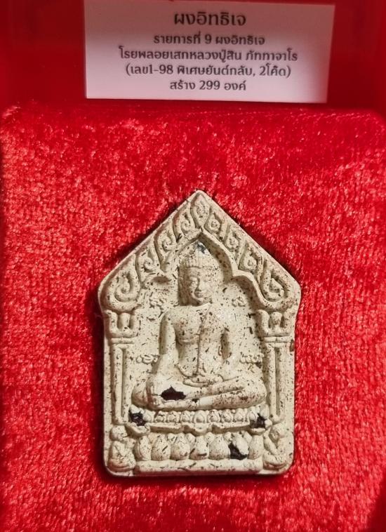 - รก.9 ผงอิทธิเจ โรยพลอยเสก (เลข 221 เลขเกือบตอง เลขสวยๆ เป็นเลขความสำเร็จ ช่วยให้ได้รับชัยชนะในสิ่งที่มุ่งหวัง เสริมความมั่นคง ความสามัคคีและเสน่ห์เมตตา) พร้อมกล่อง