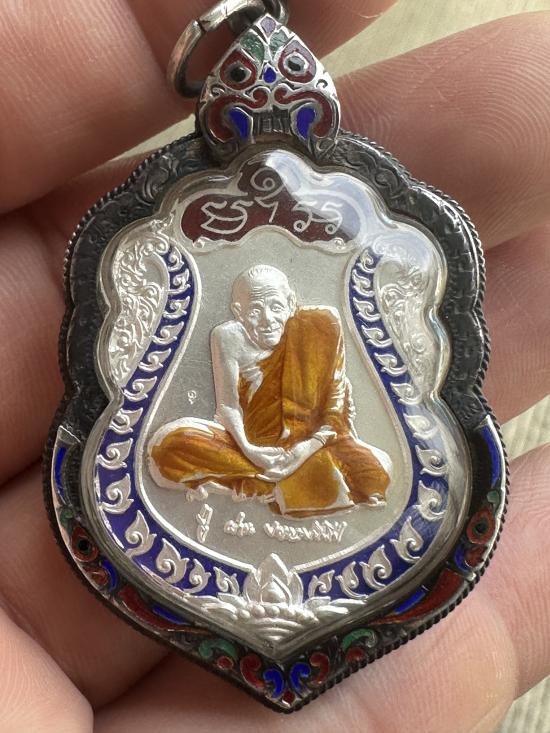 ชื่อพระเครื่อง เหรียญเสมาหลวงปู่ผ่านเนื้อเงินพร้อมกรอบเงินลงยาสั่งทำ