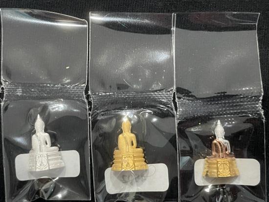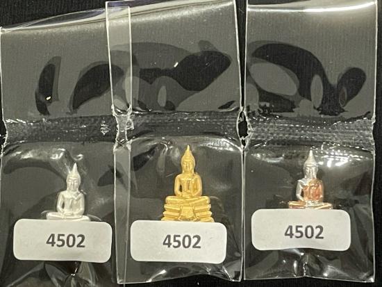 กริ่งลอยองค์พิมพ์เล็กสูง 1.7 ซม. หลวงพ่อโสธร รุ่นสมโภช 253 ปี 2566 มี 3 องค์ เนื้อ 3 k เนื้อเงิน และเนื้อชุบทอง อยู่ในซีลเดิม เส้นคอล่ำๆ หมายเลข 4502 พร้อมกล่อง