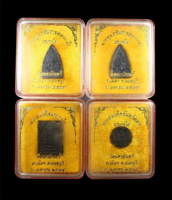 พระสมเด็จ+ จันทร์ลอย + ชินราช 2 หน้า (รวม 4 องค์) เนื้อแร่บางไผ่ วัดนครอินทร์ จ.นนทบุรี พ.ศ.2539 หลวงพ่อคูณ ปริสุทฺโธ (ปลุกเสกเดี่ยว ณ วัดบ้านไร่ จ.นครราชสีมา ก่อนพิธีพุทธาภิเษก) พร้อมกล่องเดิม |