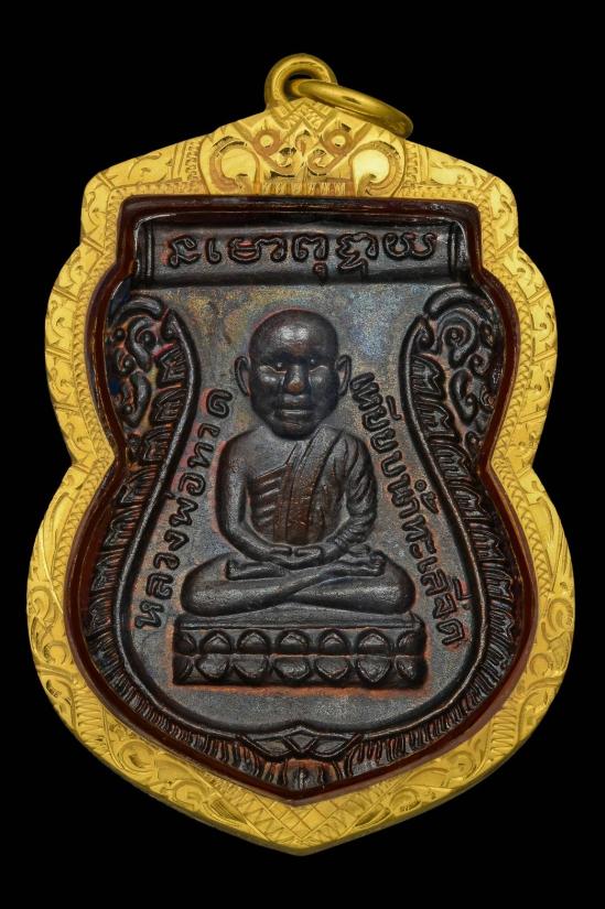 หลวงปู่ทวด เหรียญเสมาหัวโต รุ่นทูลเกล้า เนื้อทองแดง ปี 2530 เลี่ยมทองพร้อใช้