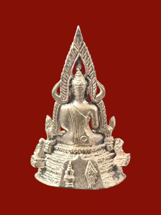 กริ่งพระพุทธชินราช ภปร. เนื้อเงิน รุ่นปฏิสังขรณ์ วัดพระศรีมหาธาตุ พิษณุโลก พิมพ์เล็ก ปี30 พร้อมกล่อง