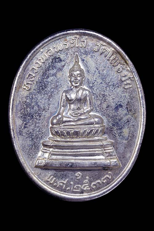 เหรียญหลวงพ่อพระใส หลังหลวงพ่อคูณ รุ่น สร้างศาลาหลวงพ่อพระใส ( เนื้อนิกเกิลกะไหล่เงิน ) พ.ศ.2537 ( ตลับเดิม )