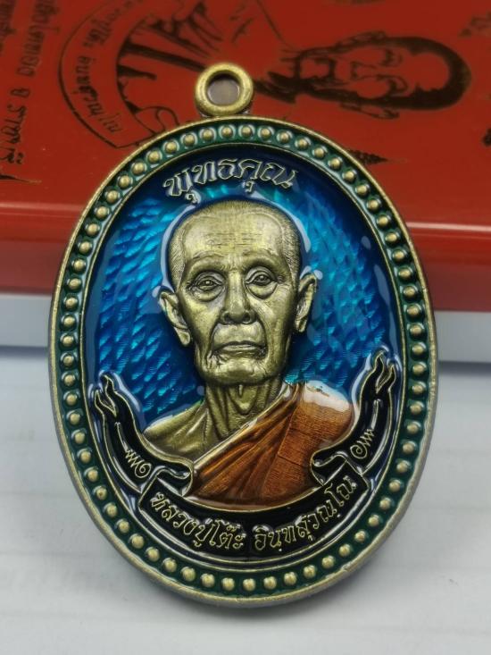 เหรียญหลวงปู่โต็ะ รุ่น พุทธคุณ พิมพ์ครึ่งองค์ วัดถ้ำสิงโตทอง ราชบุรี ปี 2566 เนื้อทองแดงซาติน ลงยาพื้น หมายเลข 28 พร้อมกล่อง