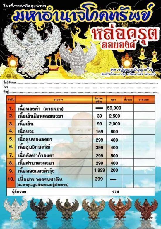รูปหล่อครุฑลอยองค์มหาอำนาจโภคทรัพย์ หลวงปู่บุดดา ปัญญาธโร วัดป่าใต้พัฒนาราม อ.วัฒนานคร จ.สระแก้ว รายการ9ทองแดงผิวรุ้งเลข127/175 รายการ10ฝาบาตรซาตินแจกศูนย์จองเลข13/41/58 รวม5ตนกล่องเดิมๆ แท้ทันประกันใ |