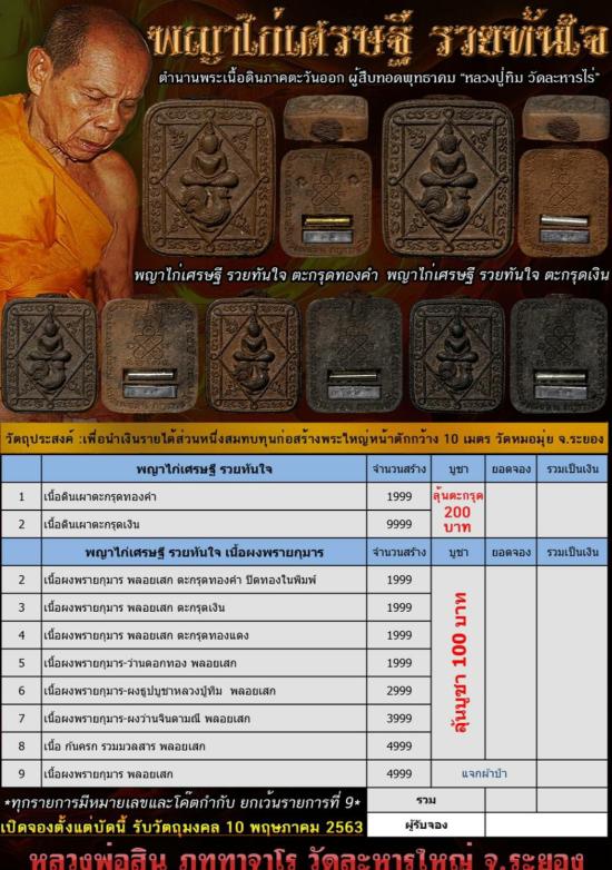 พญาไก่เศรษฐี รวยทันใจ เนื้อผงพรายกุมาร หลวงพ่อสิน วัดละหารใหญ่ ศิษย์เอกหลวงปู่ทิม 3องค์ ไม่แกะซีล ลุ้นเตะกรุดทองคำ ลุ้นเนื้อ ลุ้นเลข |