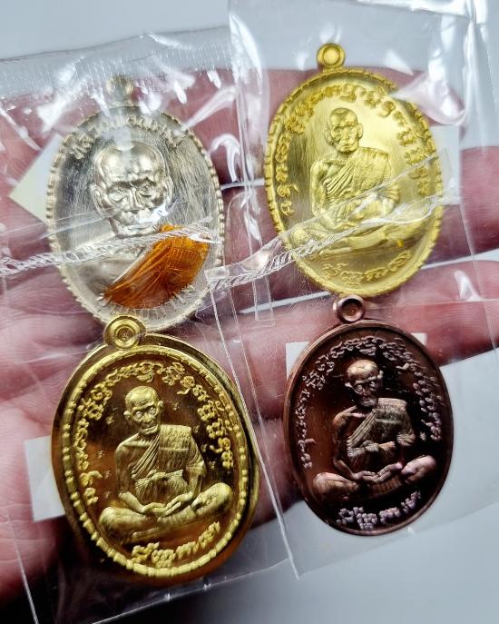 เจริญพรกลาง หลวงพ่อพัฒน์ คละเนื้อ 4เหรียญ พร้อมกล่อง