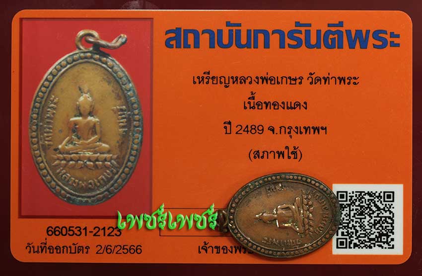 เหรียญ หลวงพ่อเกษร วัดท่าพระ รุ่นแรก เนื้อทองแดง ปี2489 จ.กรุงเทพฯ สภาพน่าใช้ เก่าเดิมๆตามอายุหายาก พร้อมบัตรรับรองพระแท้จากการันตีพระสบายใจได้พระแท้แน่นอน ค่ะ