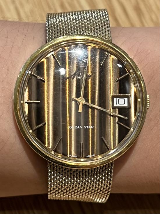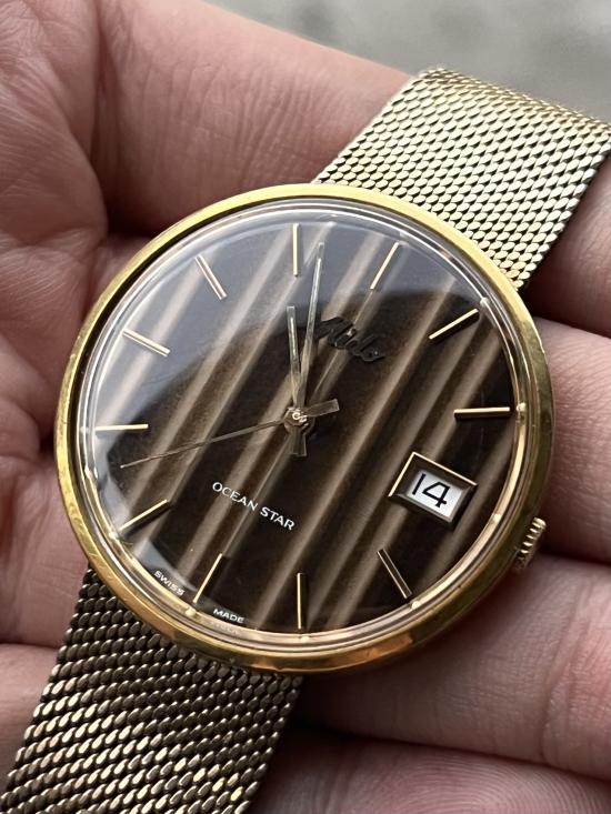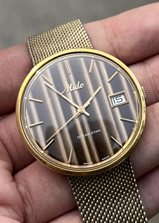 +++HOT!!! VERY RARE!!! สวยแชมป์โลก!!! MIDO OceanStar Gold Filled Automatic Brown/Gold Stripe Dial แท้เดิมทุกจุด สุดหายาก ในไทยแทบไม่มีหมุนเวียน นักสะสม ร้องโอ้โหกันหลายท่าน!! นักสะสมห้ามพลาดครับ!!+++