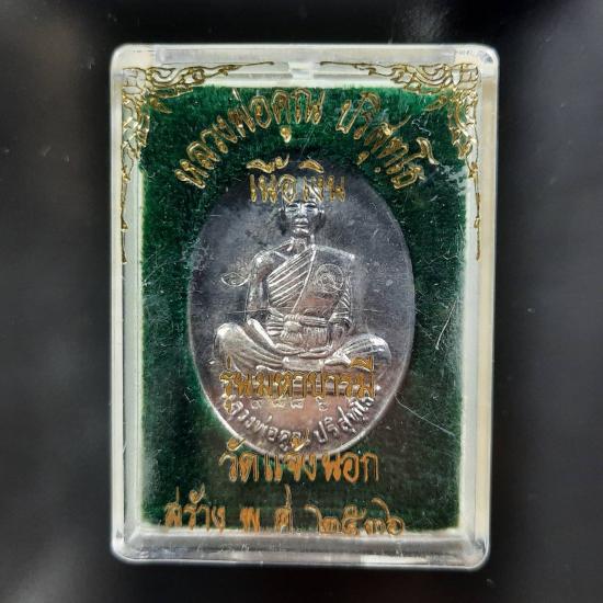 เหรียญหลวงพ่อคูณ ปริสุทโธ รุ่นมหาบารมี เนื้อเงิน วัดแจ้งนอก ปี2536 หมายเลข 9886 น้ำหนัก 10.74 กรัม สภาพสวยเดิม ไม่มีการล้างผิวหรือศัลยกรรมใดๆ พร้อมกล่องเดิมวัด